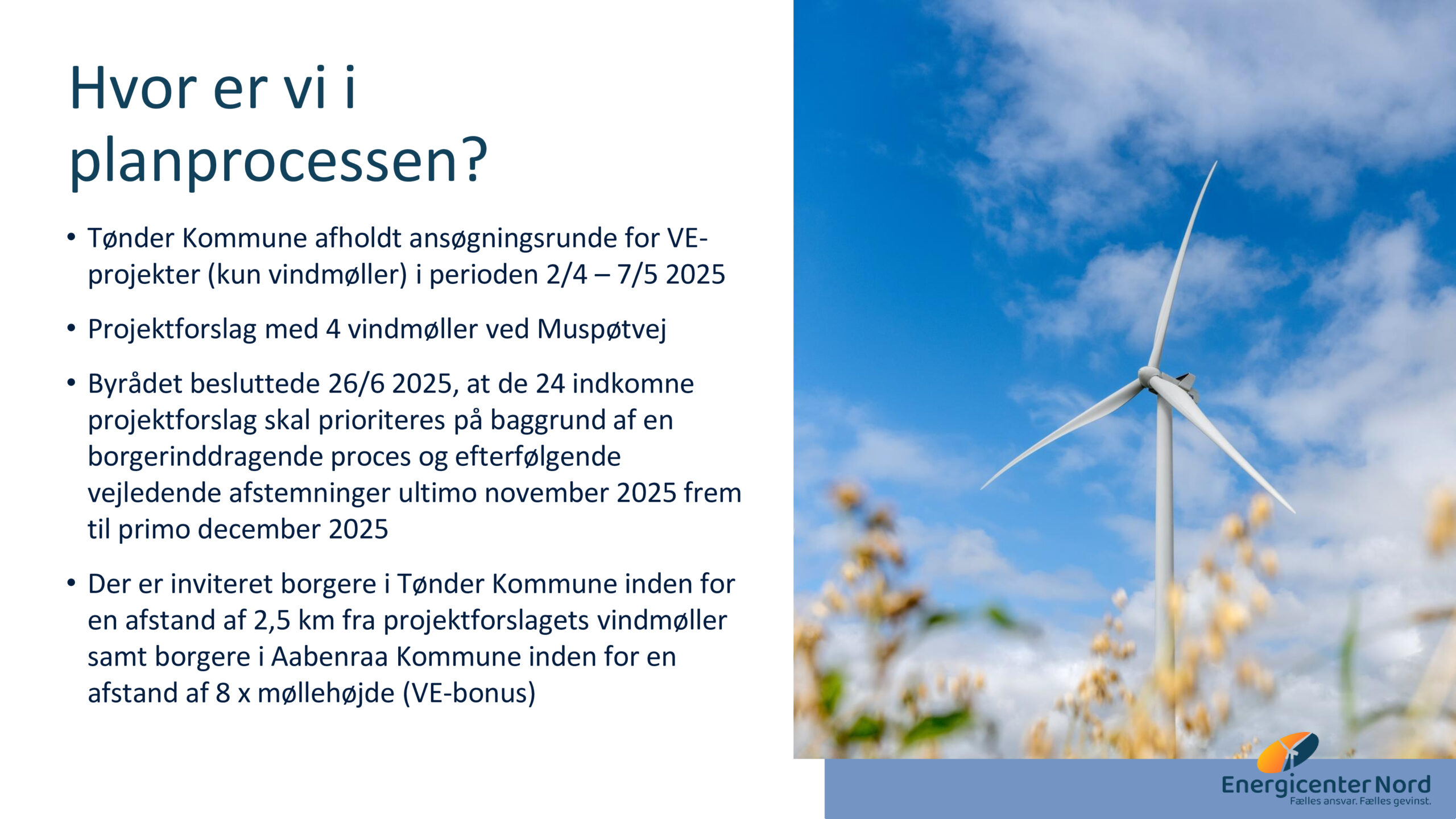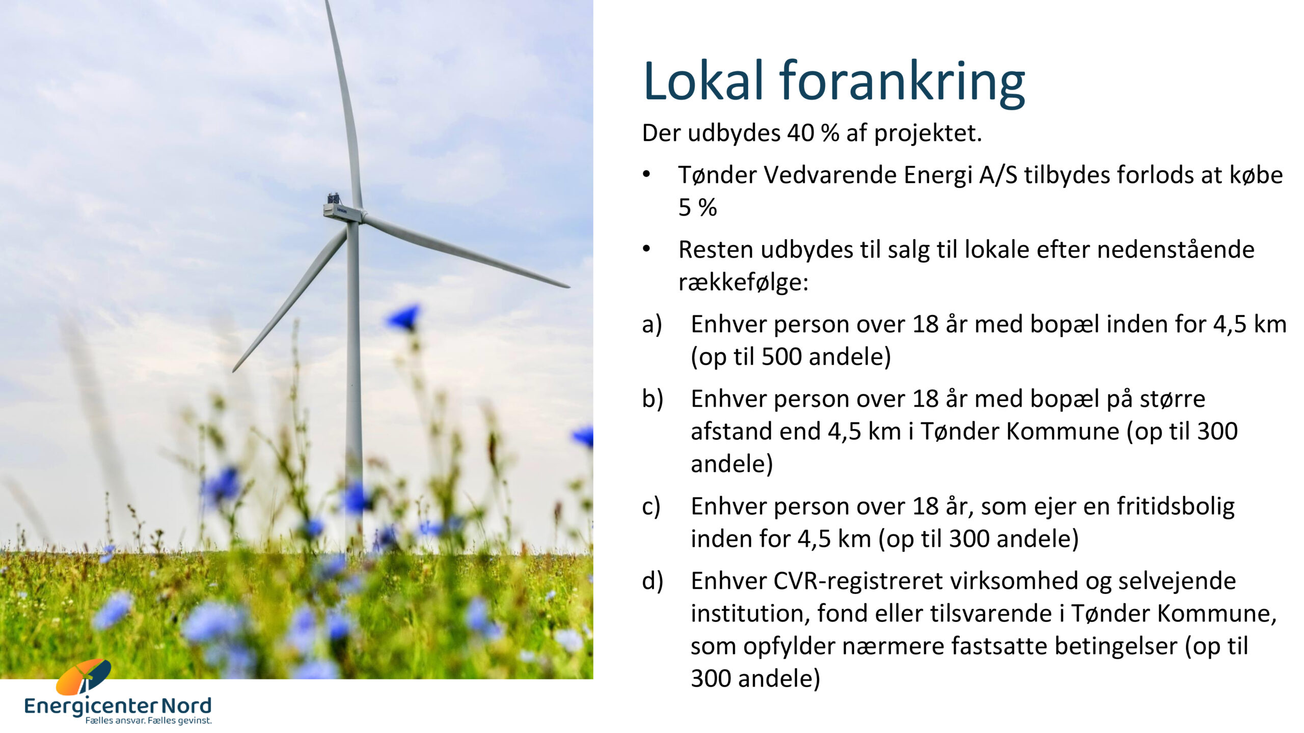 Vi vil løbende orientere om udvikling i projektet i Nyhedsbrev som tilbydes alle borgere i Tønder og Åbenrå kommune i nærområdet og inden for en radius af 2,5 km af vindmølleprojektet